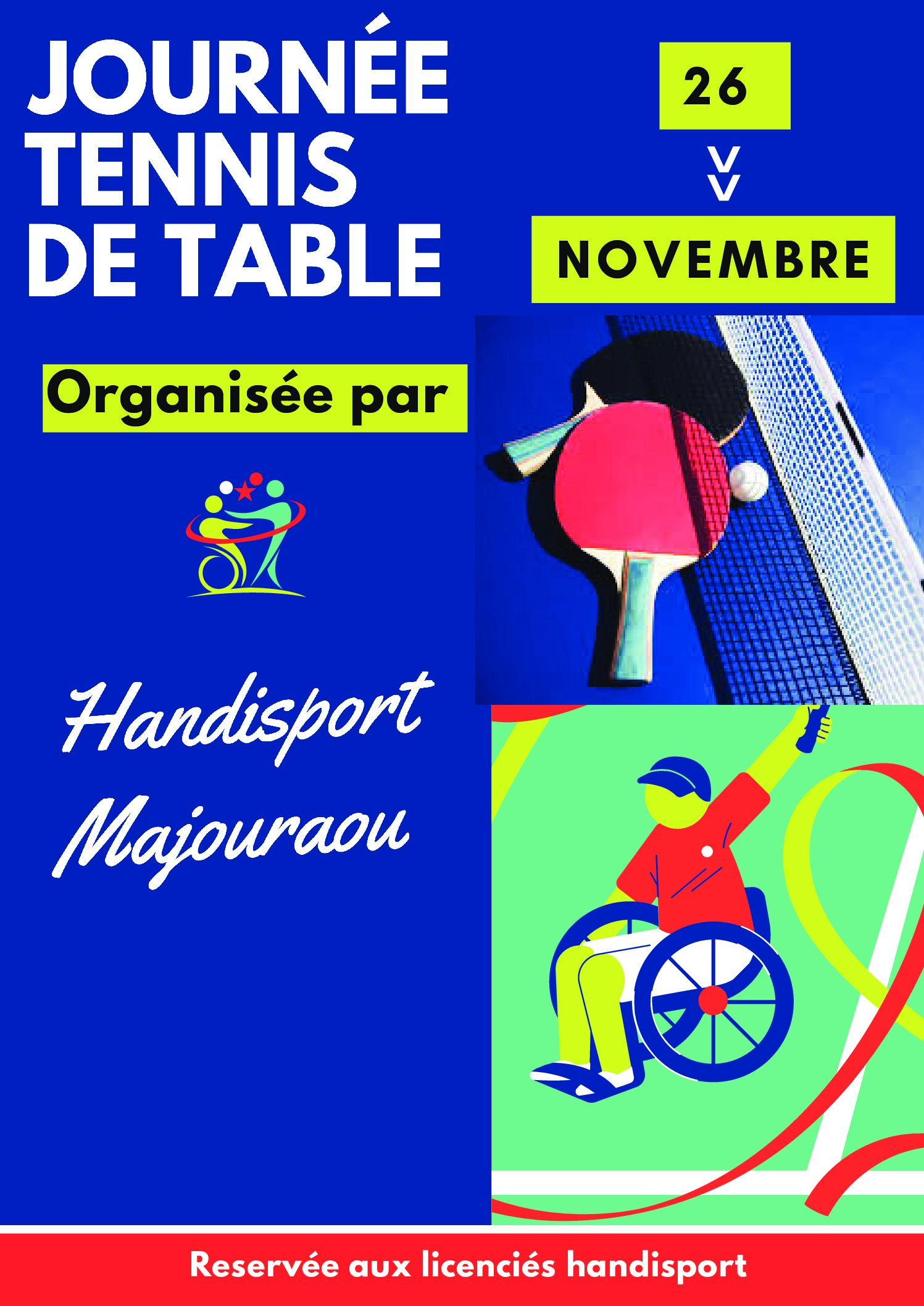 Le mardi 26 novembre 2025 l’Association Handisport Majouraou organise une journée tennis de table pour les personnes licenciés handisport